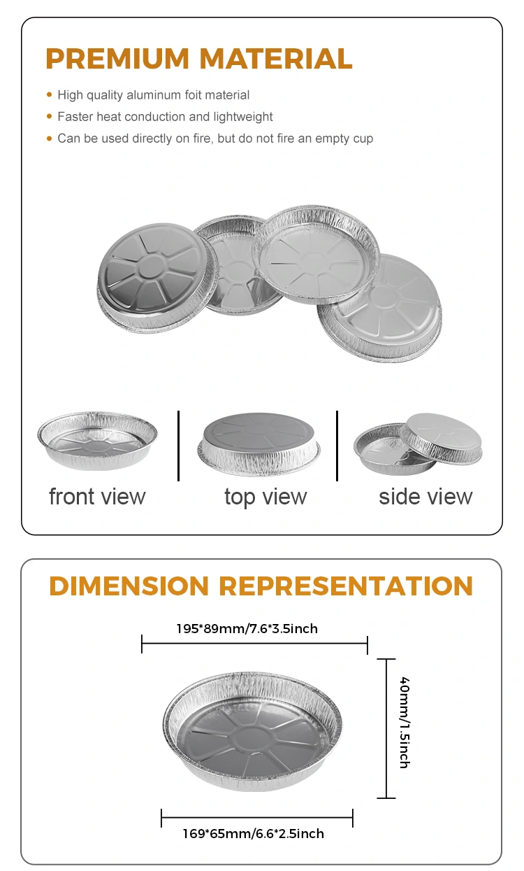 „Yunchu“ aliuminio folija siūlo 7 colių raukšlėtą picos keptuvę sidabrinės aliuminio folijos talpyklos su modelio numeriu 5067. Viršutinio skersmens viršutinio skersmens yra 168 mm (maždaug 6,6 colio), apatinis - 145 mm (maždaug 5,7 colio) ir 25 mm aukštis (maždaug 0,9 colio). Maždaug 400 ml (maždaug 14,1 uncijos) talpa, ji idealiai tinka kepti picą, neslidinant kepimo metu, lengvai atpalaiduojant pelėsį ir be kvapo. Be to, visiškai suvirškintas dizainas neleidžia maistui išsilieti, padidindamas praktiškumą. Mes taip pat galime teikti logotipų pritaikymo paslaugas, kurios padės pagilinti klientų įspūdį ir pagerinti jūsų prekės ženklo matomumą.