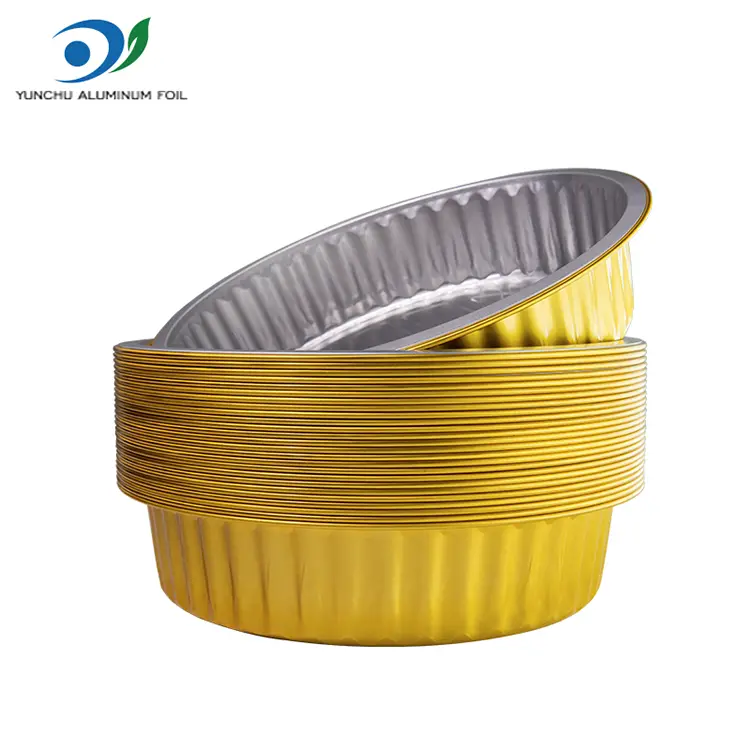 „Yunchu“ aliuminio folijos tiekėjas Vienkartiniai kepsninės dėklai Auksiniai apvalūs aliuminio folijos konteineriai gali būti pritaikyti į išsaugotą paskirstymą, maitinimo pakuotes, grupinius patiekalus, šaltos grandinės pernešimą, maistą, maistą ir kt. Palaikykite aliuminio folijos dėžę ir aliuminio folijos dangčio derinio užsakymą Didmeninė prekyba, vienas 1000 vienetų MOQ, pasižymintis puikiu aukšto ir žemos temperatūros atsparumu, tinkamu pritaikyti įvairiose vietose.
