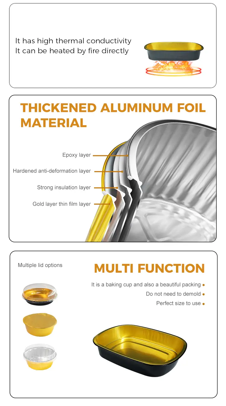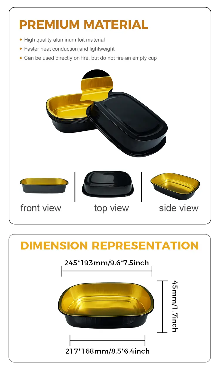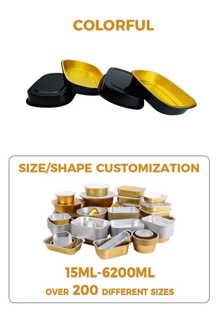 Hot Tags: Vienkartiniai juodo aukso kepimo skardos stačiakampio formos aliuminio folijos konteineriai