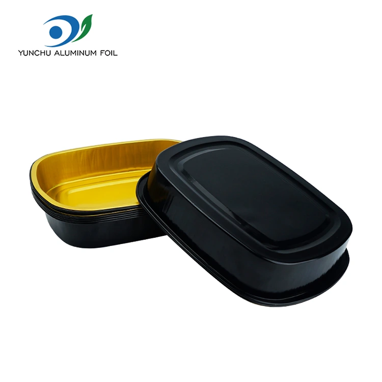 ​Yunchu Aluminum Foil Supplier Disposable black gold catering Rectangular Aluminum Foil Containers is suitable for large-volume catering and takeaway industries, especially suitable for baking, catering chains and self-service chains and other scenarios, the product is made of 8011 food-grade aluminum foil material, the height is low and suitable for some turkey, grilled fish, stew and other foods with Daugybė ingredientų gali būti naudojami su aliuminio folijos sandarinimo dangčiu ir PET visiškai skaidriu dangčiu, pasižyminčiu puikiu sandarinimo efektyvumu, aukšto temperatūros atsparumu ir alyvos bei nuotėkio prevencijos funkcija. Jis plačiai naudojamas įvairiuose scenarijuose, tokiuose kaip maisto pakuotė, šildymas, šaldymo ir išsinešimo pristatymas. Paviršius pritaiko lengvą sienos dizainą, pasižymintį plokščiu ir sklandžiu išvaizda, kuri patogiai yra automatiškai užklijuoti šilumos užklijuotą plėvelę, taip pagerinant pakavimo efektyvumą.