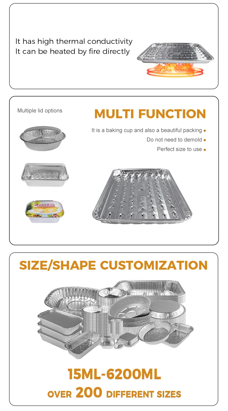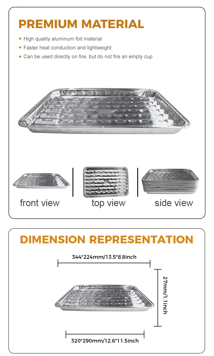 „Yunchu“ aliuminio folijos tiekėjas Vienkartinė grotelių keptuvė yra tinkama lauko ir patalpų keptuvėms. Šis kepimo skardos dizainas turi unikalų skylių dizainą, nereikia jaudintis dėl naftos dūmų problemų. Skylių dizainas leidžia greitai laidoti šilumą ir vienodesnį šildymą, vengiant vietinio tradicinių kepimo padėklų perkaitimų. Nesvarbu, ar tai stovyklavimas dykumoje, ar šeimos susibūrimas, ši kepsninė suteikia švarią, sveiką aplinką jūsų kepsninei. „Yunchu“ aliuminio folijos vienkartinė keptuvė yra pagaminta iš maisto lygio kontaktinių medžiagų, kad būtų užtikrinta higiena ir sauga kepsninės proceso metu. Aukštos kokybės aliuminio folijos medžiaga yra ne tik patvari, bet ir turi sklandų paviršių ir nėra kvapo, leidžiančios mėgautis maistu, nesijaudindami dėl jokios pavojaus sveikatai. Ši kepimo keptuvė buvo suprojektuota atsižvelgiant į kiekvieną detalę, pradedant nuo išvaizdos iki praktiškumo.