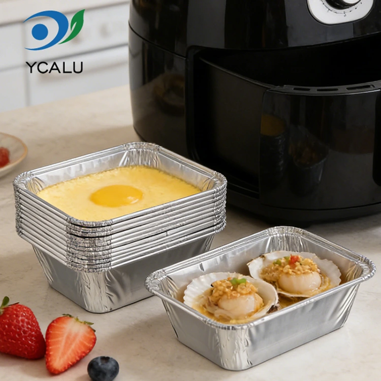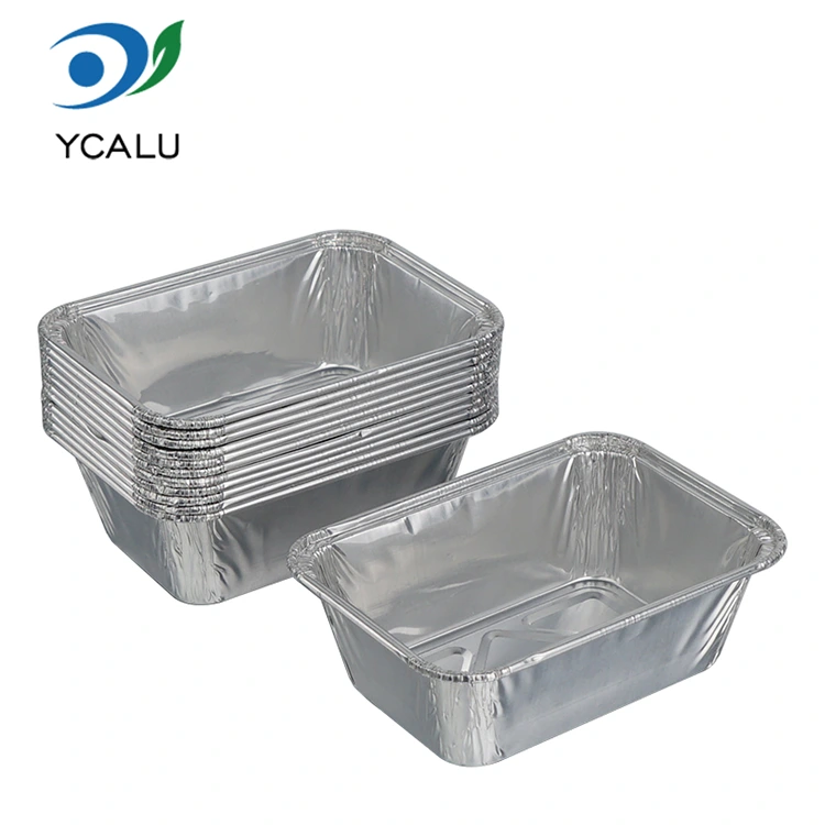 Yunchu aliuminio folijos gamyklos vienkartinė stačiakampė kepimo pyrago sidabrinė aliuminio folijos talpykla yra pagaminta iš sutirštintos maistinės aliuminio folijos medžiagos, o vidinė sienelė padengta maistine danga. Jis netoksiškas, bekvapis, neišskiria kenksmingų medžiagų, todėl tiesioginis sąlytis su maistu yra saugesnis. Jis atitinka vidaus ir užsienio su maistu besiliečiančių talpyklų saugos standartus, atsparus temperatūrai nuo -20°C iki 250°C. Galima tiesiogiai įdėti į orkaitę, gruzdintuvą, mikrobangų krosnelę ir šaldytuvą užšaldyti. Nereikia keisti indo iš formavimo šaldytuve į kepimą aukštoje temperatūroje. Aliuminio folijos medžiaga gali būti perdirbama ir naudojama pakartotinai, o tai atitinka ekologiškos aplinkos apsaugos koncepciją ir sumažina išteklių švaistymą. Produktas yra plonas ir nešiojamas, jį galima sukrauti ir laikyti, taupant sandėliavimo ir transportavimo vietą. Jis taupo išlaidas, kai naudojamas partijomis, atsižvelgiant ir į praktiškumą, ir į aplinkos apsaugą.