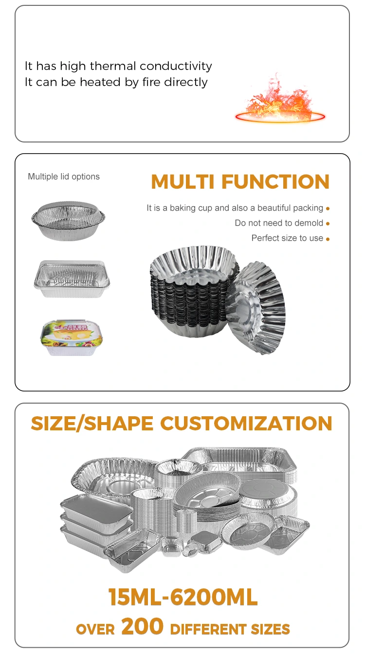 „Yunchu“ aliuminio folijos kiaušinių pyrago skrebučiai kepa sidabro aliuminio folijos maisto indą, nesvarbu, ar jie yra naminiai, ar komerciškai gaminami, patenkinti skirtingus poreikius. Dėl ekologiškos, saugios medžiagos ir universalus dizainas yra idealus pasirinkimas kepimo entuziastams.