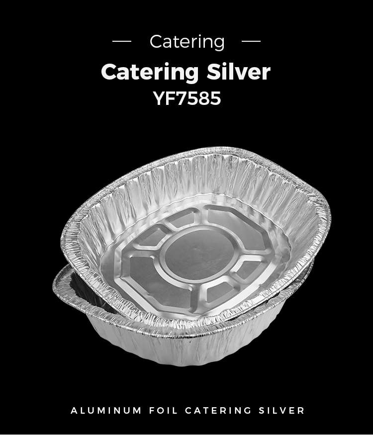 „Yunchu“ aliuminio folijos tiekėjo didelės talpos keptos vištienos kepsninės sidabro aliuminio folijos konteineriai gali būti lengvai sudedami į tokią įrangą kaip didelės krosnelės, garlaiviai ar šaldikliai. Produkto svoris yra vidutinio sunkumo, jis gali turėti įvairių daiktų svorį, o formą ir konstrukciją lengva sudėti tvarkingai, efektyviai taupant transportavimo vietą. Produktas yra pagamintas iš šviesos sienos technologijos, su sklandžiu ir tvarkingu paviršiumi, kuris patogus dideliems prekybos centruose, kad būtų galima pažymėti ir nuskaityti kodus.