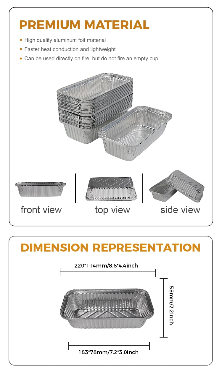 „Yunchu“ aliuminio folijos tiekėjas, stačiakampė kepsninė sutirštinta sidabro aliuminio folijos konteineriai, ilgalaikiai kepimo atsparios atviros liepsnos, patobulinto aukščio, kad būtų išvengta puodo sienos Vienkartinis naudojimas yra be rūpesčių ir valymas, nereikia valyti ir higieniškai valyti po naudojimo, naudojant nešvarių aliuminio folijos dėžutės perdirbimo vertę, kokybės kontrolės atžvilgiu griežtai stebime kiekvieną gamybos žingsnį, kad visi produktai atitiktų nacionalinius saugos standartus. Bendrovė gavo valstybės išduotų aliuminio maisto pakavimo medžiagų saugos sertifikatą ir priėmė Vokietijos ERP sertifikatą, ES SGS sertifikavimą ir ISO9001 sertifikatą.