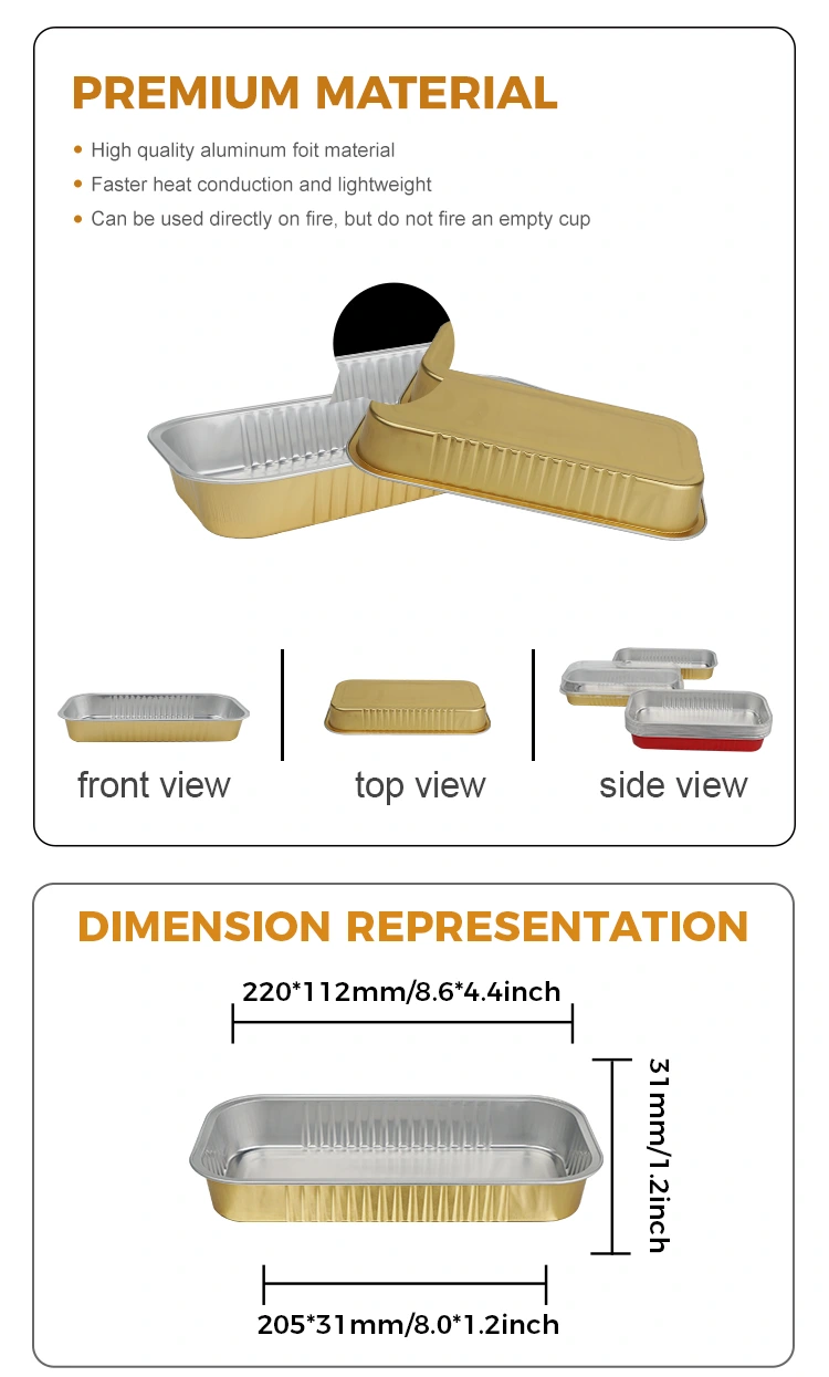 Nuo kepimo ir gamybos iki pateikimo, laikymo ir išsinešimo, stačiakampiai auksiniai kepimo lygios aliuminio folijos konteineriai turi dvejopą „išvaizdos ir stiprumo“ pranašumą, todėl kiekvienas skanus patiekalas vartotojus pasiekia rafinuočiau ir saugesniu būdu. Pasirinkite jį, kad kepimas būtų ne tik skonio malonumas, bet ir visapusiškas vizijos bei patirties atnaujinimas!