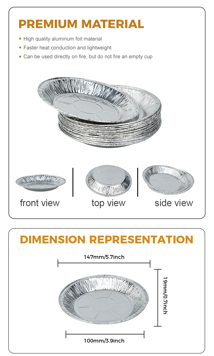 Funkcijos: Apvalios oro keptuvės kepa sidabro aliuminio folijos maisto indą