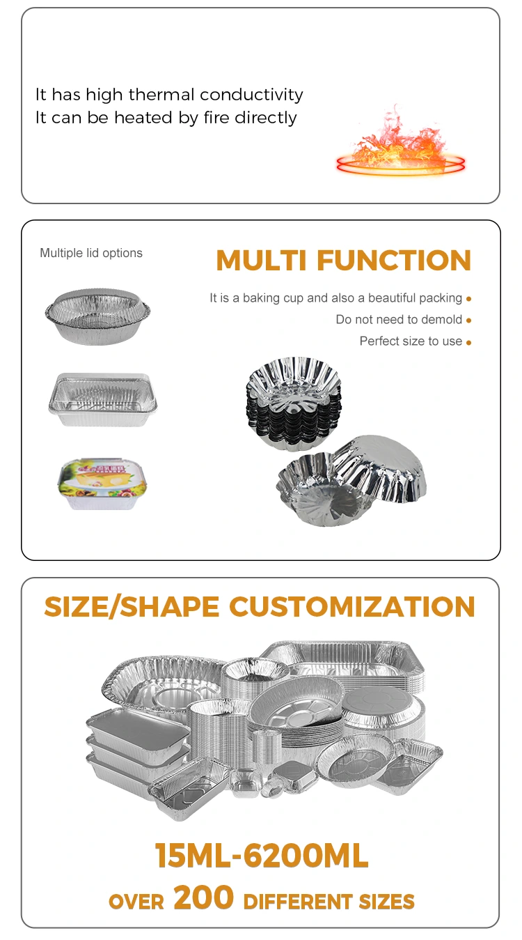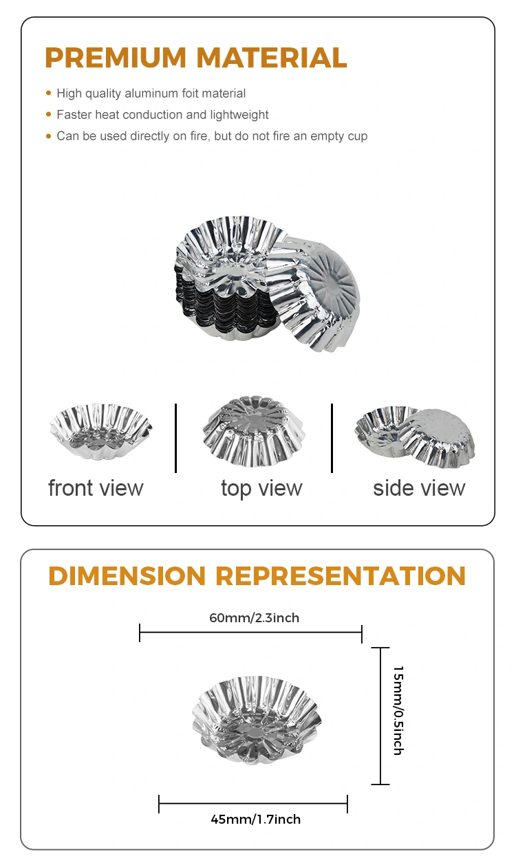 Yunchu aliuminio folijos tiekėjas apvalus kiaušinių pyragas žaislas kepa sidabro aliuminio folijos maisto indą. Šis kiaušinių pyrago dėklas ne tik atrodo gražiai, bet ir atkreipia ypatingą dėmesį į praktiškumą ir saugumą. Šis kiaušinių pyrago dėklas pasižymi neslidžios taurės konstrukcija su neslidžios tekstūra, kuri padidina trintį ir efektyviai neleidžia maistui paslysti, todėl jūsų kepimo rezultatai tampa stabilesni. Antra, jo nėrinių puodelių burnos dizainas gali būti sulankstytas ir laikomas, o tai yra ir taupanti erdvė, ir nešiojama, todėl jis yra idealus šeimoms ar mažoms viešojo maitinimo įstaigoms. Kiaušinių pyrago dėklas yra pagamintas iš maisto lygio aliuminio folijos, kuri susidaro vienu metu ir jo nereikia valyti, o tai labai pagerina naudojimo efektyvumą. Jis tinka visų rūšių virtuvėms, nesvarbu, ar tai kepami pyragaičiai, pyragaičiai, kiaušinių trynių pyragaičiai, dubenėlių pyragai, galima puikiai pateikti. Šis kiaušinių pyrago dėklas išlaikė Vokietijos ERP sertifikatą, ES SGS sertifikavimą ir ISO9001 kokybės valdymo sistemos sertifikatą, užtikrinantį produkto saugumą ir aplinkos apsaugą. Visos mūsų žaliavos yra sveikos ir ekologiškos maisto rūšies medžiagos, atitinkančios tarptautinius maisto saugos standartus, kad galėtumėte valgyti užtikrintai.
