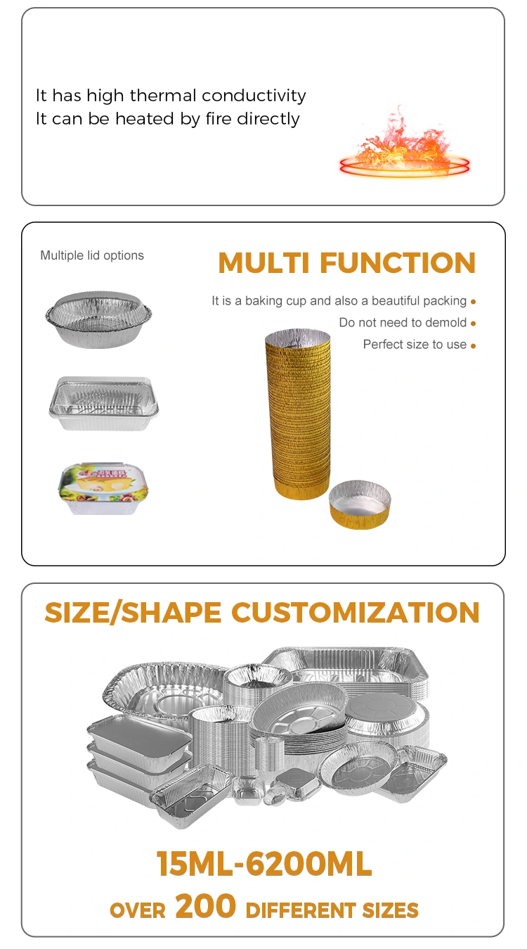 Šis apvalus mažas apvalus mažas kepimo sidabro aliuminio folijos maisto talpykla yra pritaikyta „Yunchu“ gamykloje ir yra pagamintas iš sidabrinės aliuminio folijos medžiagos, J35-16 modelis. Tai idealiai tinka tiekti nedideles maisto porcijas, tokias kaip užkandžiai ir žandikauliai, kad patenkintų šiuolaikinių vartotojų poreikius mažoms ir įvairioms maisto porcijoms. Patogu mėgautis atskirai ar pasidalyti su kitais.